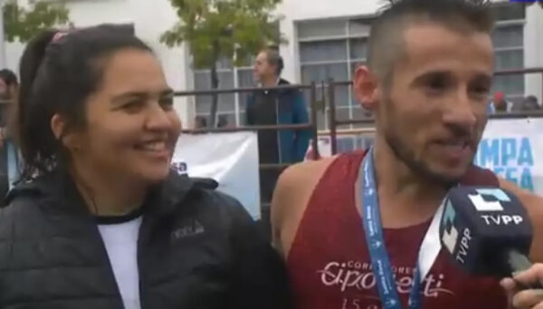 La edición Nº 41 de la maratón internacional “A Pampa Traviesa” dejó una postal que trascendió lo estrictamente deportivo en la capital pampeana. Al cruzar la línea de meta, el atleta rionegrino Roque Vanega decidió aprovechar el marco de la competencia para proponer matrimonio a su novia frente a la multitud que colmaba la zona de llegada.