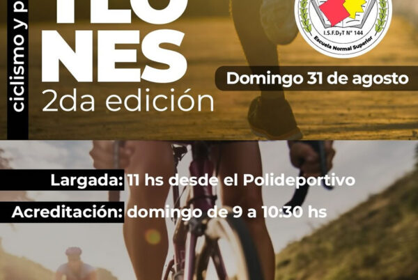 El domingo 31 de agosto se disputará la 3º fecha de la II edición del Campeonato de Duatlones –Ciclismo y Pedestrismo- organizado por la dirección de Deporte municipal, la Agrupación “Nos Gusta Pedalear, el Club Barrio Alegre, el Instituto Superior de Formación Docente nº 144 y el Club Progreso.