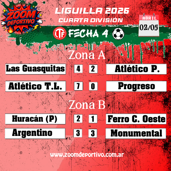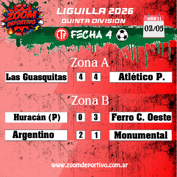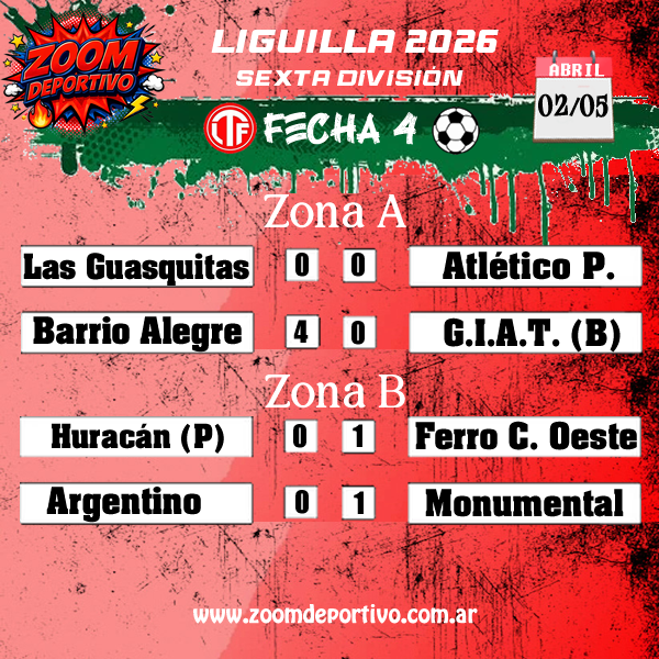 Huracán (P) y Las Guasquitas 9 puntos; Monumental, 4; y Barrio Alegre, 3; Ferro Carril Oeste, 1; Atlético Trenque Lauquen, 0.