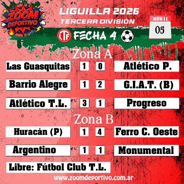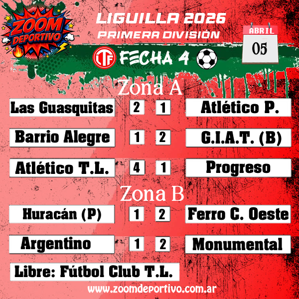 Fútbol Club TL y Monumental, 9 puntos; Ferro Carril Oeste, 6; Argentino, 3; y Huracán (P), 0.