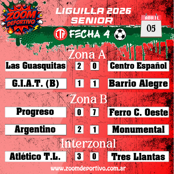 Ferro Carril Oeste 9 puntos; Monumental y Argentino, 6; Progreso y Tres Llantas, 0.