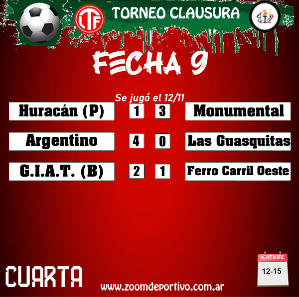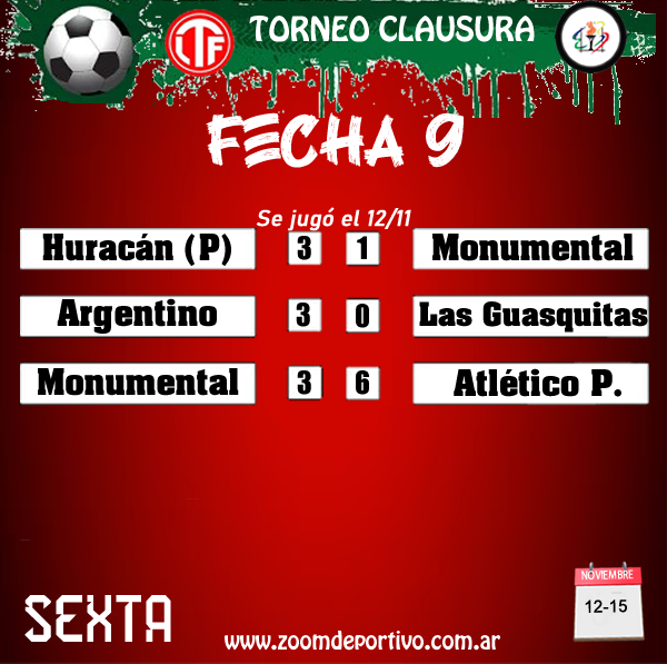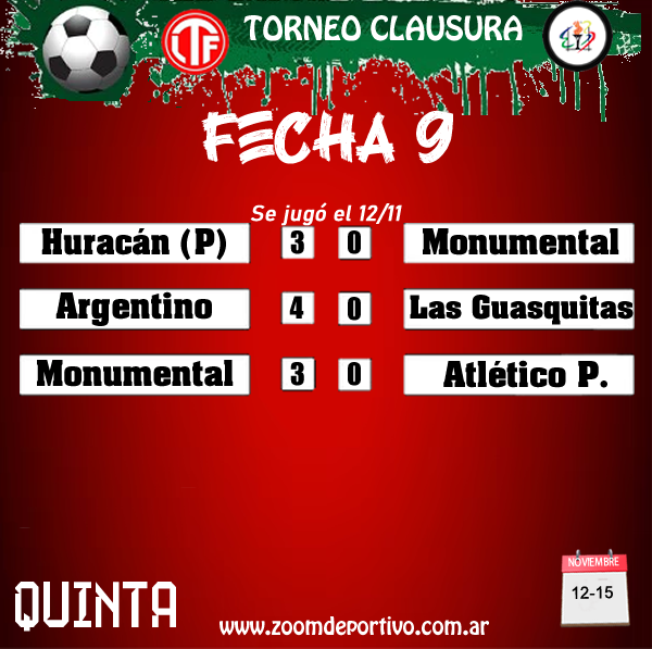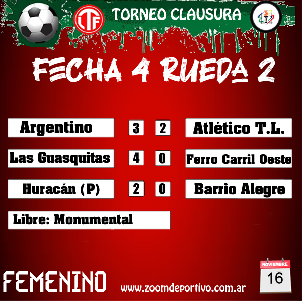 Posiciones: Las Guasquitas 24 puntos; Huracán, 21; Monumental, 18; Argentino, 11; Ferro y Barrio Alegre, 6; Atlético Trenque Lauquen, 4.