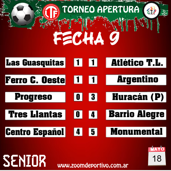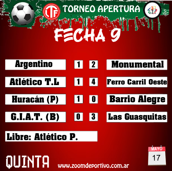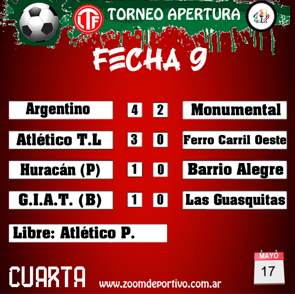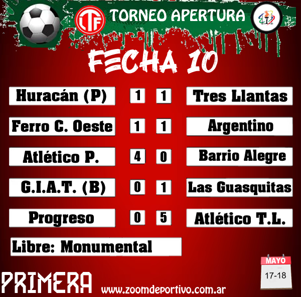 Monumental se adjudicó el torneo Apertura de primera división de la Liga Trenquelauquense de Fútbol justo en la fecha que quedaba libre, ya que ninguno de sus inmediatos perseguidores ganaron. Ni Huracán el sábado a la noche pudo vencer a Tres Llantas, ni Ferro Carril Oeste y Argentino se sacaron ventajas en el clásico, en consecuencia, el “Canario” salió campeón una fecha antes de la finalización del certamen.